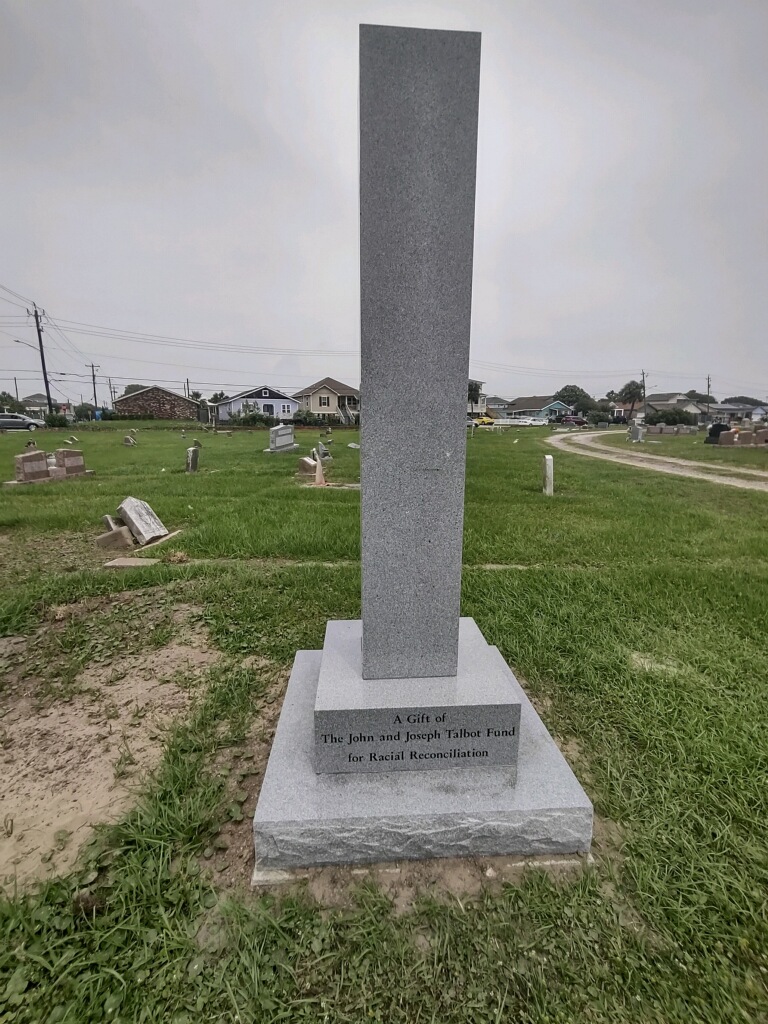 Created using funding from the John and Joseph Talbot Fund through the Episcopal Diocese of Texas Racial Justice Initiative, the Cain marker in the cemetery where the Reverend and his wifeโs remains rest, is an 8-foot obelisk bearing witness to the work of the church and the commitment of the Episcopal Diocese of Texas to the people on Galveston Island.